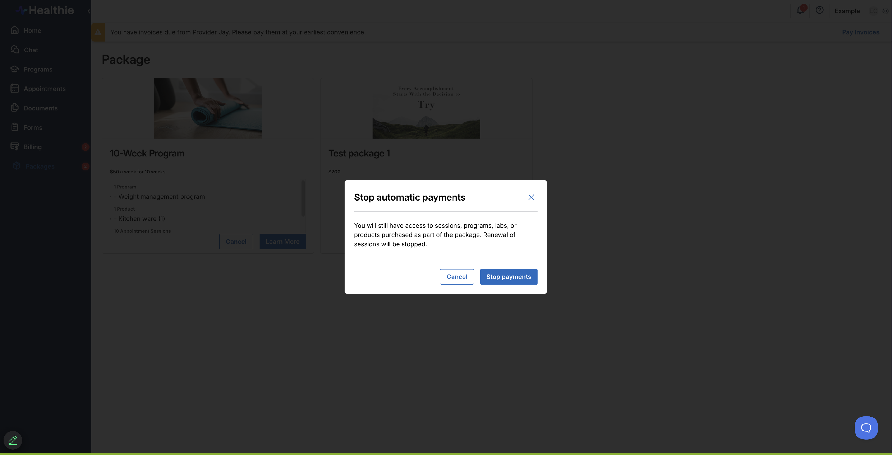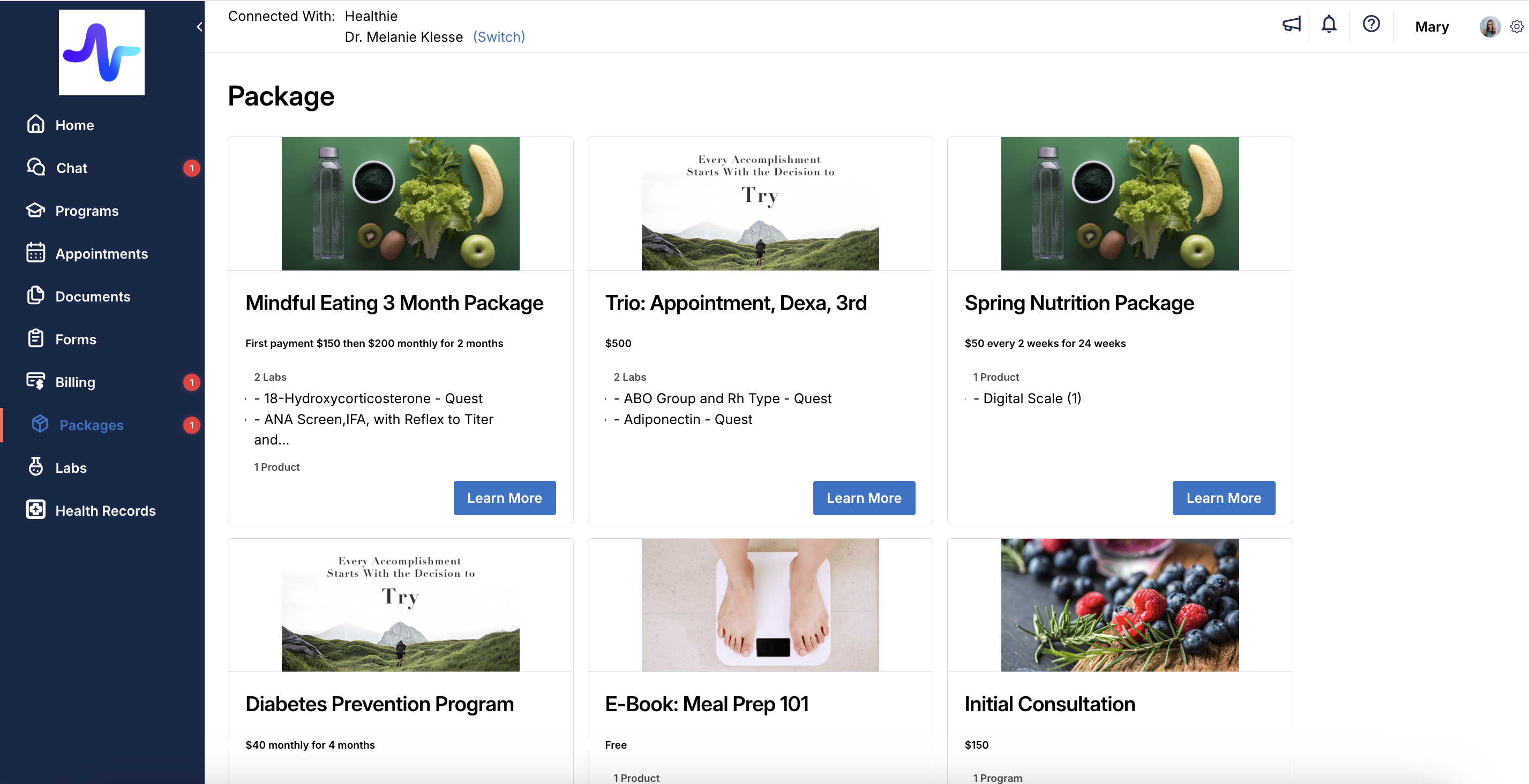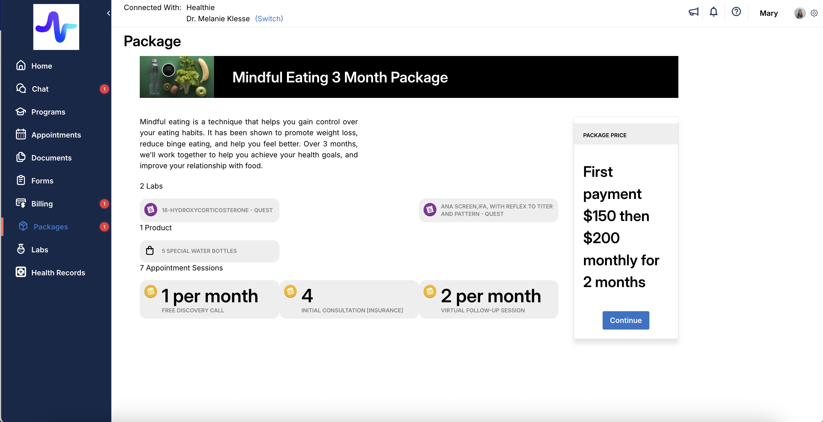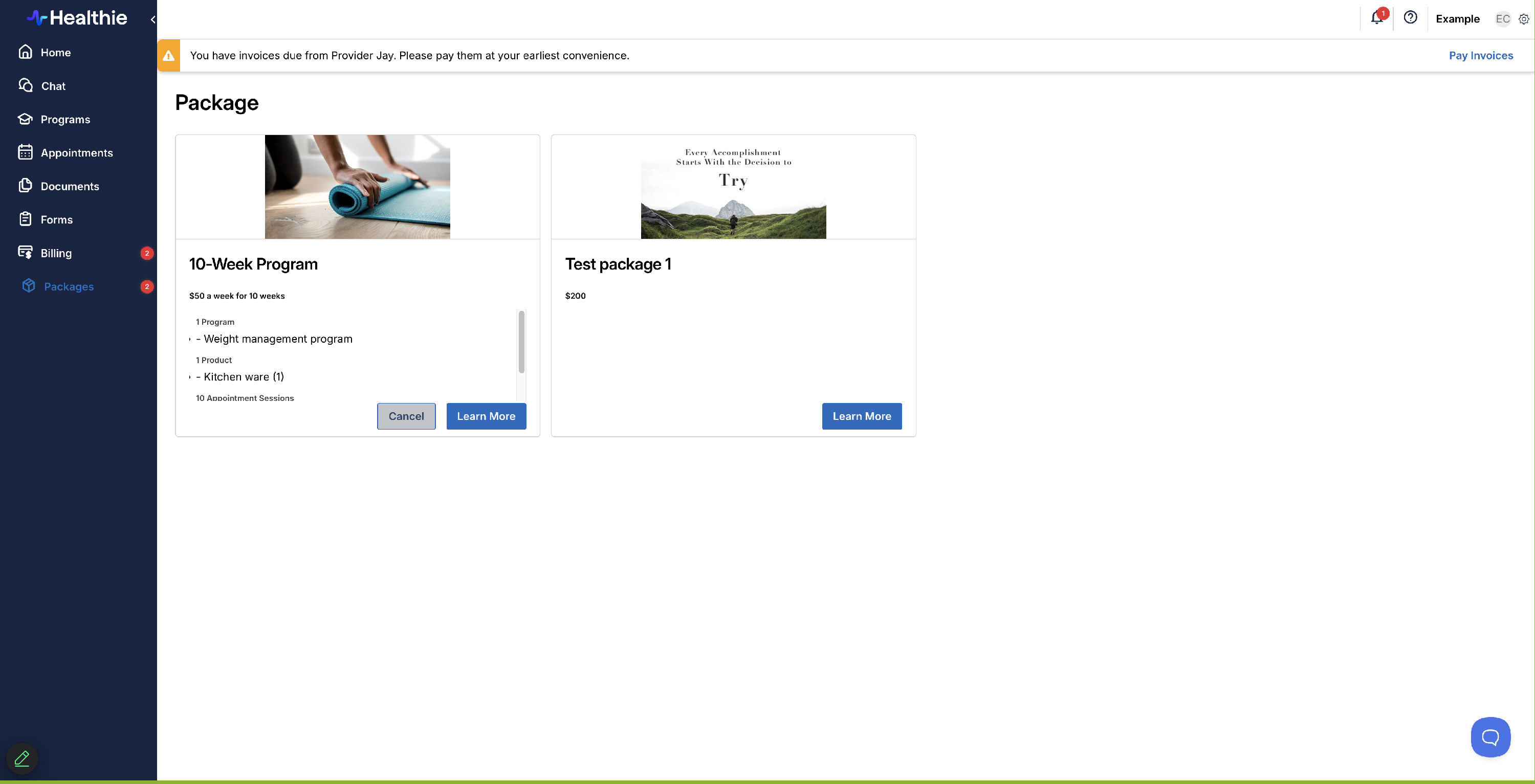 If your healthcare provider offers packages for services, you can easily purchase and manage them through your Healthie Client Portal.