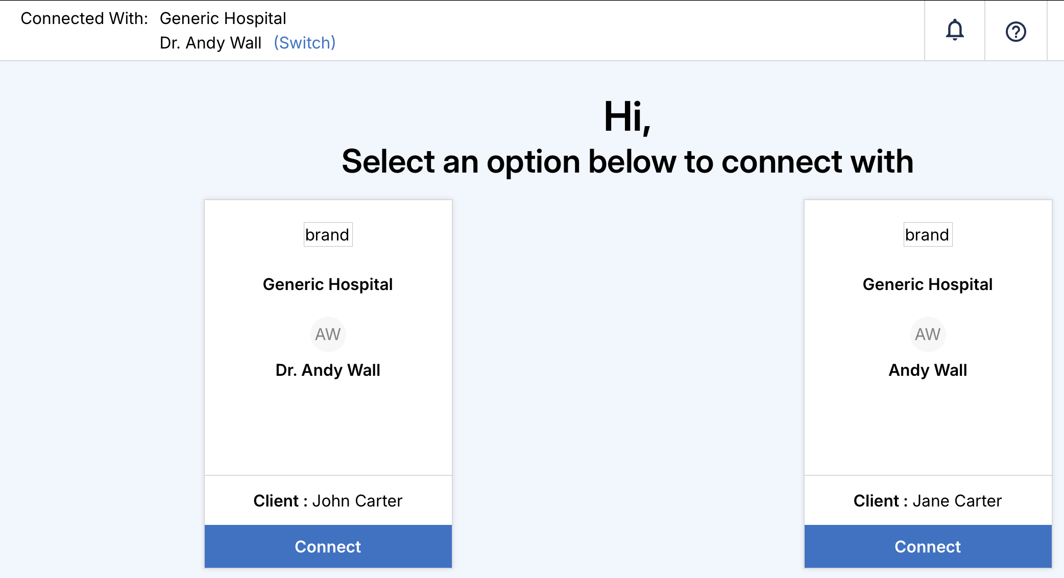 If you would like to Toggle between providers (or between client profiles), click "Switch" to select the provider you'd like to connect with.