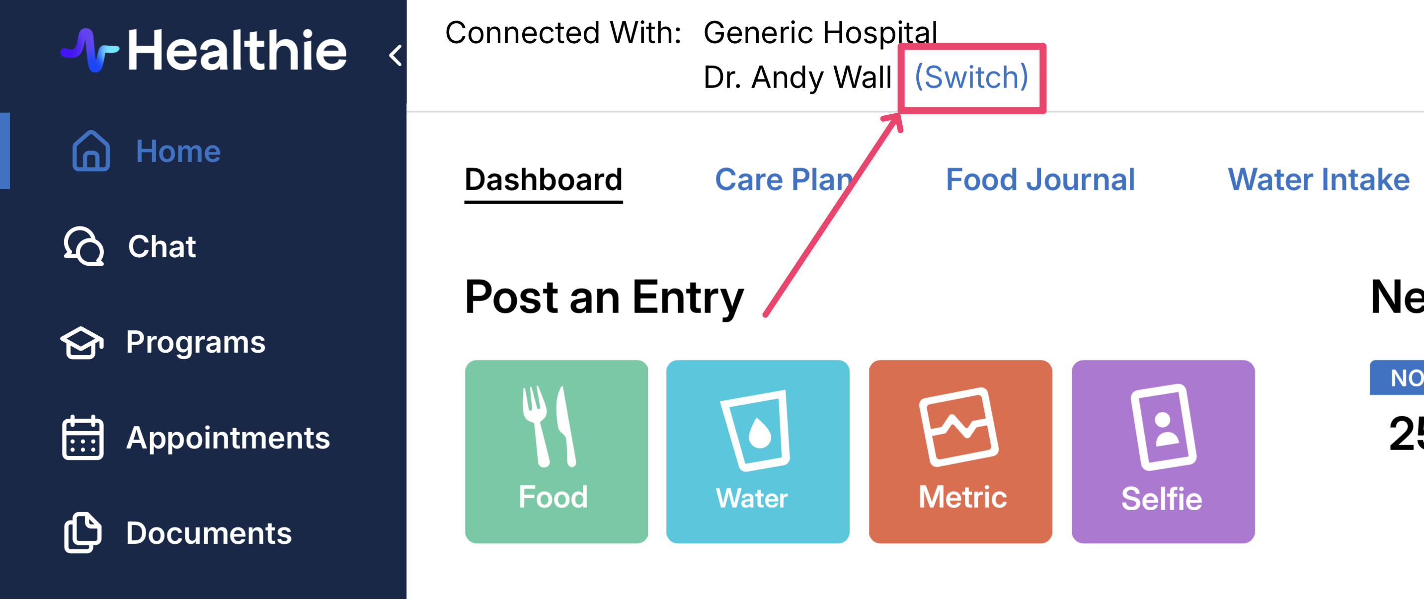 - Note: If the providers are within the *same* organization, you will not need to use Switch. Information from providers within the same organization will show up within the individual account you have associated with that organization.